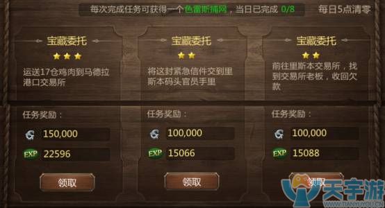 玩法规则:宝藏委托的任务分为1/2/3等级,星际越高则任务的奖励越丰富;