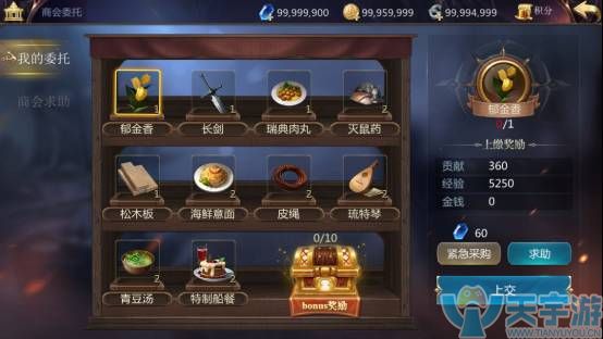 玩法规则:商会总管会发布10个物品的公告板,玩家们提交对应的物品完成任务;