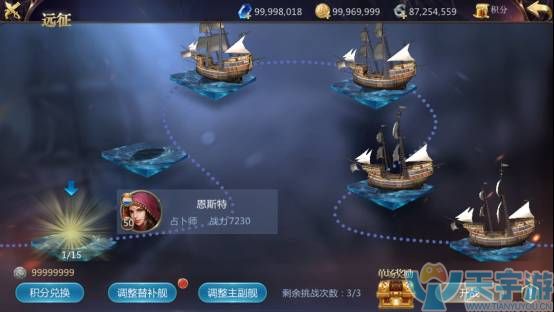 玩法规则:航海家可以排除1—2名航海士前往不同的海域探险,航海士必须是空闲的航海士,不能担任旗舰及副舰的职务;
