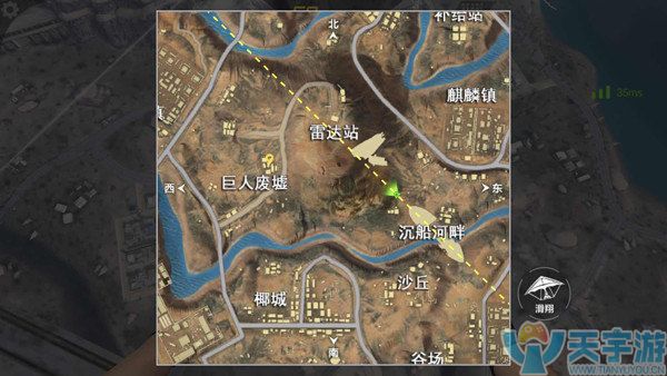 首先确认自己飞机的航线,观察大体图确认自己最终要降落的地方,在CF荒岛特训中,我们的滑翔伞具有良好的飞行效果,这样让我们可以有较大的落地选择空间,而我们选择地方要满足这几点: