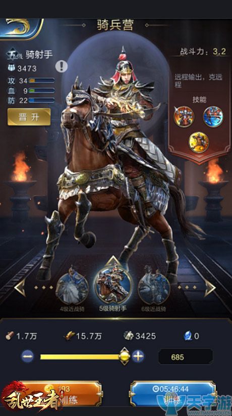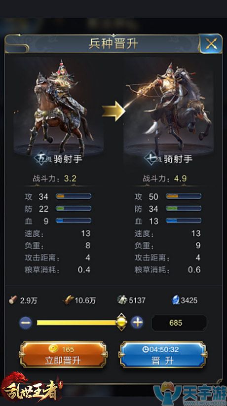 5级骑射手(数量685)晋升7级: