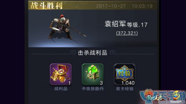 袁绍军:战利品1、中级技能丹3、君主经验1040