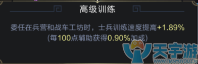 可以根据自己的情况选择技能学习。学习了技能就可以根据技能委任到兵营上了。这个是没有什么固定模版的。完全可以个性化选择。怎么搭配都可以。只要是我们训练士兵有关的。