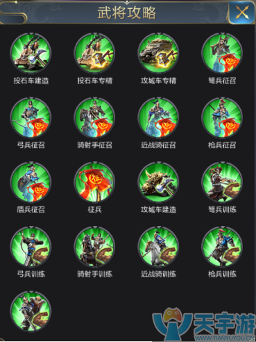 为了提升自身的兵力,提高战斗力,最有效的方法就是训练士兵。不同等级的兵训练需要的时间和资源也是不一样的。