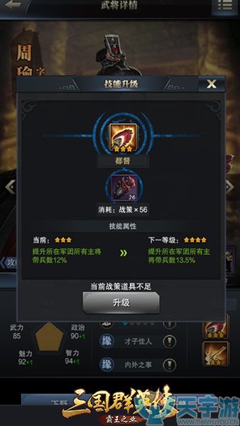 1.先锋的武力和参谋的智力值,数值越高提升攻防属性越高。