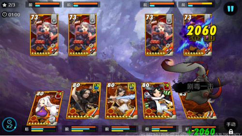 2号位置秦义绝:秦义绝可以在第3回合的时候虚弱对面的敌人,同时对自己和同排队员施加一个防护罩,防护罩存在状态下不损伤生命值并且增加虚弱和眩晕抗性100点。