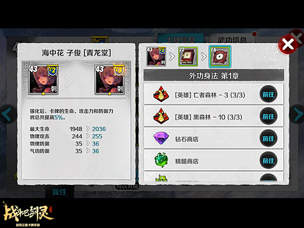 卡牌强化,是提升战力的一个重要途径。新手玩家在合理分配资源的时候,也要考虑到强化所用的材料和金币以及体力的分配额度。