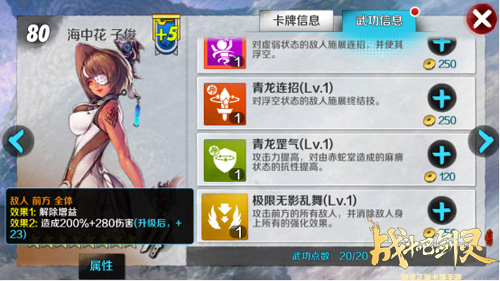 5号位置陈苏儿:作为这个队伍浮空状态的发动机,陈苏儿才是这个队伍的核心卡牌,同时30内力的沉默攻击还可以延缓敌人后排4号位的武功释放。