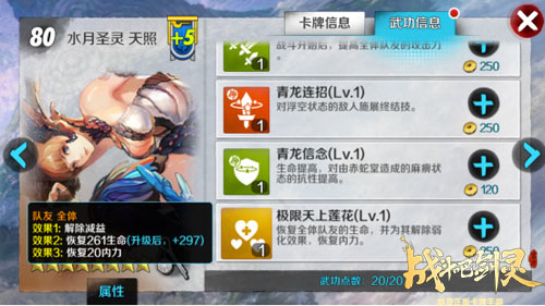 天照的极限技能“极限天上莲花”在“天上莲花”的基础上增加了恢复内力,并且每一个武功等级提升的生命恢复量也大幅度增加。