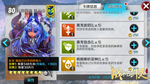 易云山的核心技能,在高等级战斗中,一个回复内力的武功完全相当于在短时间内极限输出2次,轻松颠覆战斗结果。