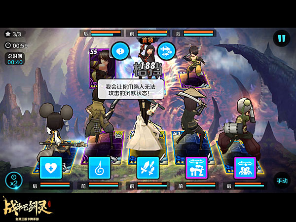 前两波攒技能,留到第三波一起爆发。注意技能释放的顺序,先林巧儿的虚弱,然后一套技能下去先秒掉一张卡牌。