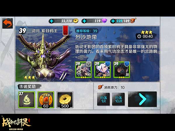 通关奖励:气力之象*1、卡牌经验值+60、金币*500