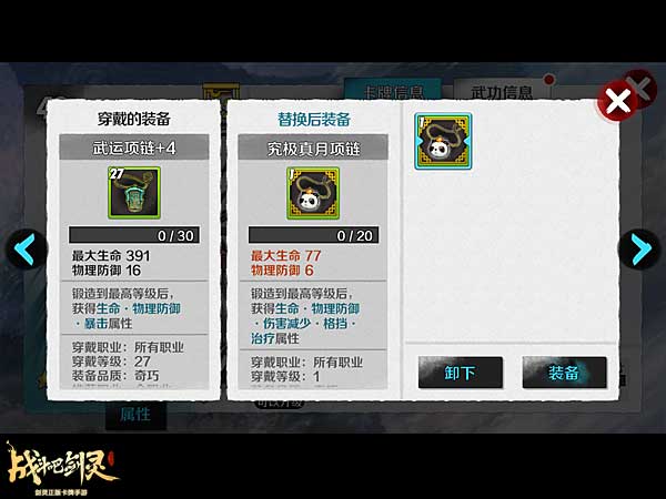 很多玩家只顾着卡牌的升星强化,却发现五星强化到4的,打不过对面四星强化到2的。这是因为人家已经换到了究极套装。看下锻造到最高等级后,两套装备的属性差了3个,终于明白为什么人家的枪手、气功师、召唤师可以放前排却站得住了。还有刻印,每天的转盘副本尽量多次刷新,尽量刷到刻印石和碎片。全部刻印满了,试试效果吧!