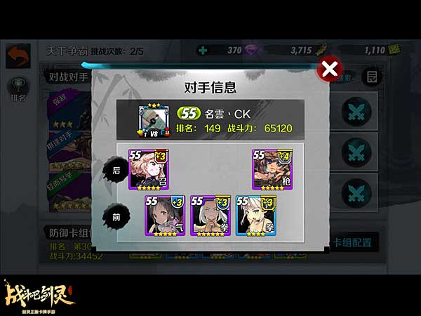 《战斗吧剑灵》天下争霸玩法中,针对主流阵容的培养,要既能在进攻时可以针对对手阵容搭配不同的克制阵容;也能在防守阵容中做到能够抵御大多数阵容的攻击。