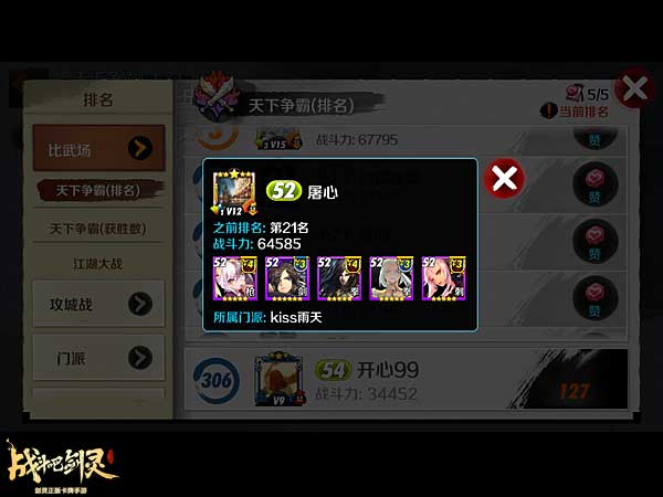 也有不少玩家,每天打完排名后,喜欢摆出一套防守型的阵容。前排是力士加两个拳师,后排是乾和王婉茹或者是郑忠胜。层层保护,各种的保护罩,各种的强化自己弱化敌人。让对手一看这样的阵容,就不想去打。