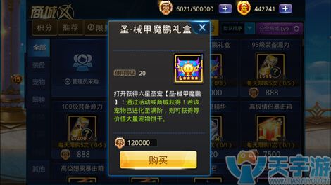 圣械甲魔鹏礼盒:六星宠物对于玩家来说是不可多得的,毕竟目前最高等级的宠物也就才7级。同时玩家还需要注意一点,那就是宠物的星级越高给玩家带来的战力就越高。即使宠物不出战也能获取一半宠物的战力加成,所以公会商店中的圣械甲魔鹏礼盒是玩家必须要购买的商品。械甲魔鹏礼盒价格并不昂贵,只需要玩家支付12w的贡献即可。这点贡献对于老司机玩家来说都是小意思。