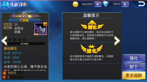 但是相对于A级翅膀和S级翅膀来说,骑士之翼的战力加成就略显不足了!而且骑士之翼作为中层B级翅膀,并没有特殊的技能加成!所以,玩家用来过渡是不错的,但是后期还是要入手一些强大的A级或者S级翅膀哦!