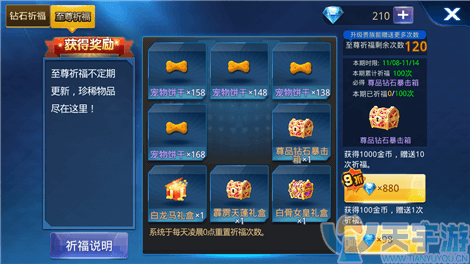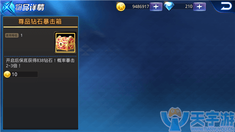 至于尊品钻石暴击箱,小编觉得这是一个超级福利!玩家利用抽奖获得各种奖励,同时还能享受钻石保底,也就是说玩家抽取一定的次数后必定会获得尊品钻石暴击箱!玩家开启宝箱后,最低可获得838钻石哦!