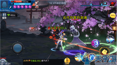【万剑归宗】游魂能释放比剑灵更强的剑影,汇聚万剑之威,化作飞速旋转的剑光,对一条直线上的敌人造成巨大的伤害。万剑归宗和剑影飞袭一样,只要我们注意走位,绕到boss背面输出,就能很容易的避免被击中。