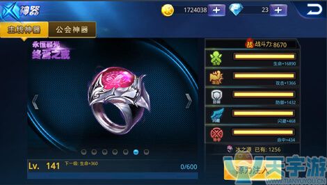 终焉之戒:终焉之戒这个神器是在玩家80级开启的,目前笔者把该神器升级到141级并没有发现该神器有什么特殊的效果,不过该神器可以给玩家提供大量的战力加成,所以有条件的玩家一定多去刷刷冰之源。