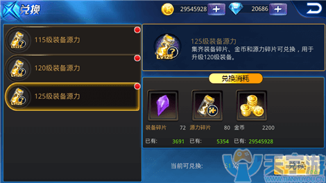 装备源力的兑换其实很简单,玩家可以通过NPC兑换任意等级的装备源力。比如深海龙鲸处的兑换NPC,可以兑换115、120、125级装备源力。而水月岛可以兑换130级的装备源力。而兑换装备源力时需要花费一定的装备碎片、源力碎片以及一定的金币。