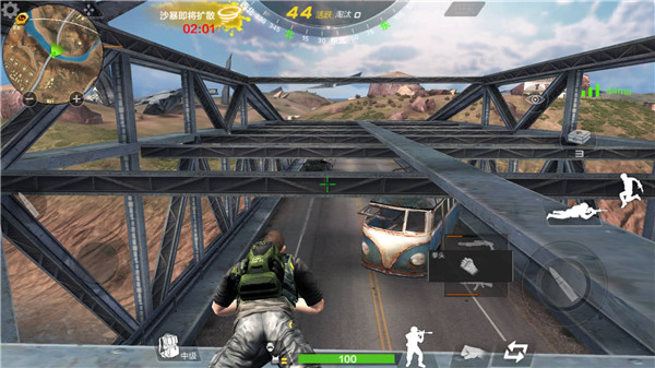 不知道小伙伴们有没有注意到,在游戏中,桥上是有许多集装箱的,而且这些集装箱都两端开口了,可以方便地进到里面去。还有一个就是在桥两边的铁架子上有个大斜坡,那上面是可以上去的,上去之后趴着就很难被发现,而且有很广的视野。利用这两个位置,可以在桥上埋伏敌人,如果有车过来或者是人过来,只要听出了声音就出去开枪带走他们,或者是扔手雷,都是不错的选择。