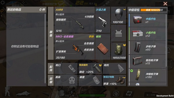 而前期的武器装备不用要求太高,我们可以逐步收集房屋来获得,但是基本的一把步枪或者一把冲锋枪,以及一些医疗包这些硬件装备要有。